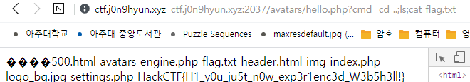 웹 쉘에 순서대로, cd ..; ls; cat flag.txt를 주면 flag.txt를 읽어서 문제를 해결할 수 있다.