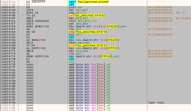 아래의 사진은 패치 가능한 영역. 이미 명령어가 있는 것은 패치를 해주었기 때문이다.